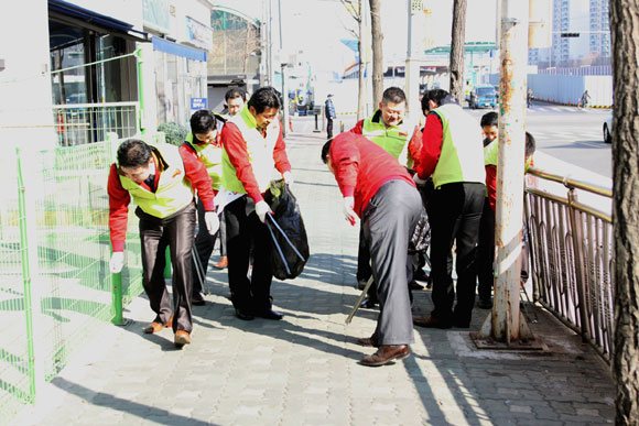 전 직원이 참여하고 있으며, 문정동 일대를 돌며 쓰레기를 줍는 환경 정화 활동 및 지역 주민들과 인사를 나누며 소통하는 시간을 가졌다.
