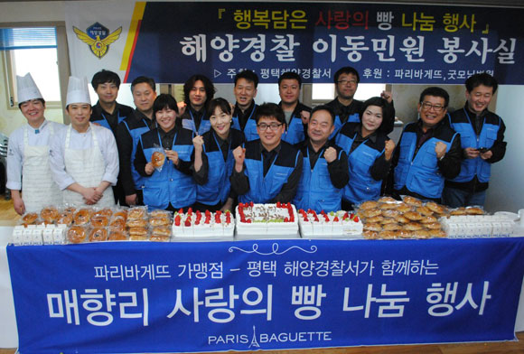 [쿠키 건강] 파리크라상의 대표 브랜드 파리바게뜨가 평택 해양경찰서와 함께 28일 매향리 어촌마을에서 ‘사랑의 빵 나눔행사’를 가졌다.
