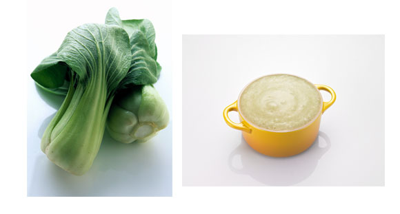 3.청경채는 줄기 부분을 제거하고 잎 부분만 끓는 물에 살짝 데친 후 곱게 간다.