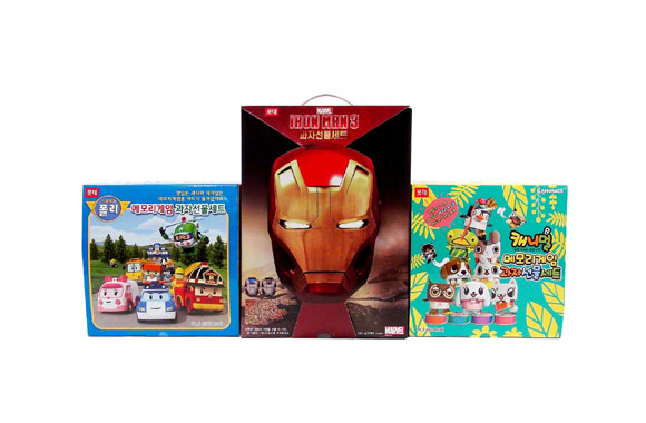 가격은 아이언맨3 선물세트 1만원, 로보카폴리 선물세트, 캐니멀 선물세트 각각 5000원이다.
