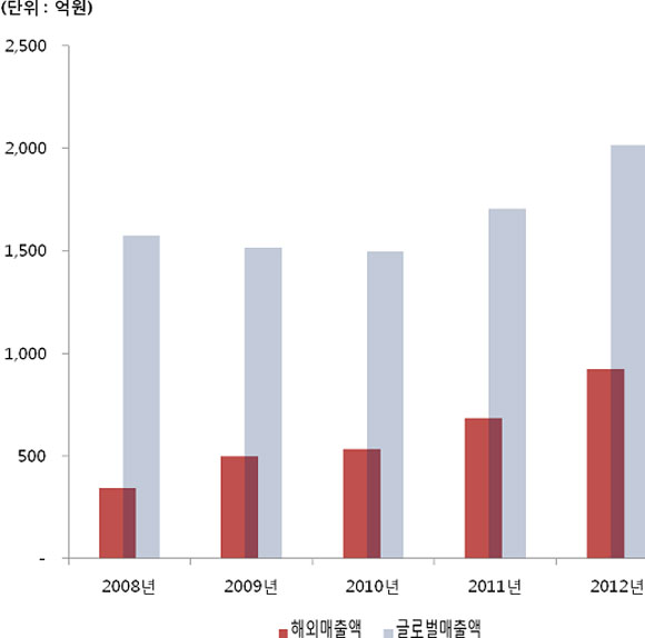 2012년 오스템 해외법인 전체 매출액은 922억원으로 전년 대비 35%의 성장세를 보였다. 오스템 해외법인 중에서 가장 큰 미국법인의 경우 작년 매출액 291억원을 달성해 전년 대비 36%의 고성장을 이뤘다. 중국법인은 작년 매출액 272억원을 기록, 전년 대비 72%의 압도적인 성장세를 보였다. 향후 오스템의 글로벌 성장을 긍정적으로 보는 시각도 이 때문이다.