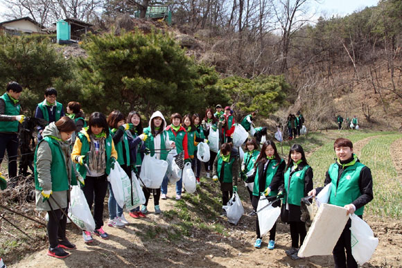 [쿠키 건강] 스타벅스커피 코리아 그린 바리스타 봉사자들이 11일 여주 남한강 상수원 보호 구역을 방문해 환경 정화 활동을 전개했다.