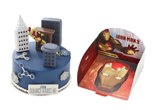 파리바게뜨 ‘아이언맨’ 케이크는 하늘을 나는 아이언맨 피규어로 장식한 캐릭터 케이크다. 인기 블록버스터 영화 ‘아이언맨3’의 개봉일에 맞춰 출시된 이 제품은 영화 속 한 장면을 그대로 옮겨놓은 듯한 디자인으로 아이들의 상상력을 자극한다. 케이크를 먹고 난 후, 장식물인 아이언맨 피규어와 배경지의 아이언맨 종이가면은 가위로 오려 장난감으로 활용할 수 있다.