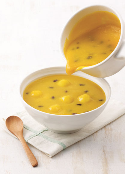 영양만점 부드러운 단호박죽은 불린 찹쌀에 물과 찐 단호박을 넣고 농도를 조절하기 위해 물을 부어가며 끓이면 완성된다. 이 때, 간은 소금이나 설탕으로 한다. 보다 쫀득 쫀득한 식감을 살리려면 찹쌀로 만든 새알심을 만들어 넣으면 된다.