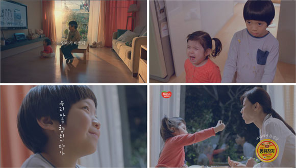 동원F&B는 ‘내 마음 참치에 담아’ 캠페인을 시작하며 ‘엄마가 바쁘다’, ‘아내가 아프다’ 등 총 두 편의 TV광고를 새롭게 선보였다. 두 광고 모두 일상의 평범한 이야기들을 동원참치를 통해 감성적으로 풀어냈다. ‘엄마가 바쁘다’ 편은 회사 일로 바빠 늦게 들어오는 엄마를 위해 어린 남매가 참치김밥을 만들어 준다는 내용이다.