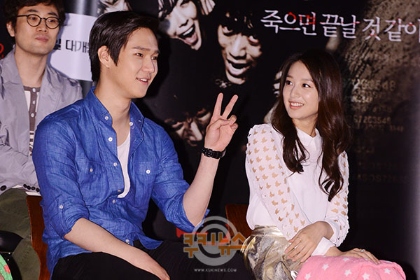 [쿠키 영화] 배우 고경표, 김지원(왼쪽부터)이 28일 오후 서울 자양동 롯데시네마 건대입구에서 열린 영화 ‘무서운 이야기 2’(감독 김성호, 정범식, 김휘, 민규동) 언론시사회에 참석했다.