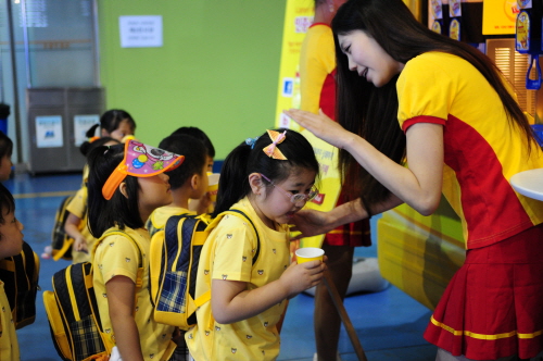 [쿠키 생활] 제3회 튼튼쑥쑥 베이비·키즈 페어에 참가한 어린이들이 립톤 복숭아 아이스티를 시음하고 있다. 이날 립톤은 박람회에 참가한 어린이와 부모들을 대상으로 아이스티를 무료로 제공했다.