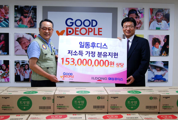일동후디스는 국제구호개발 NGO 굿피플(Good People)을 통해 전국의 저소득층 가정의 영유아들을 위한 1억5000만원 상당의 분유를 기부한 것이다. 이번에 기증된 제품은 ‘후디스 산양분유’를 비롯해 ‘트루맘 뉴클래스 퀸’ ‘트루맘 프리미엄 후레쉬’ 등 일동후디스에서 생산하는 프리미엄 청정분유 전 품목이다.
