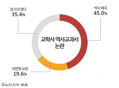 하지만 ‘잘 모르겠다’라고 응답한 유보층도 35.4%에 달해 교과서로 대표되는 역사 서술 및 인식 논란은 계속될 것으로 보인다.