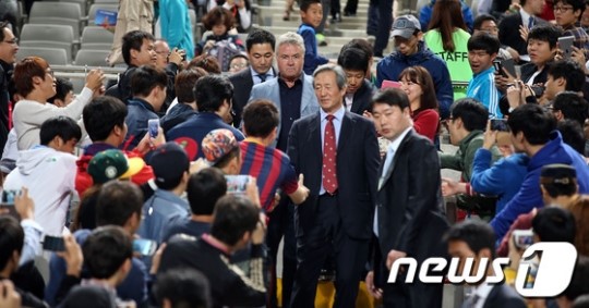 [쿠키 스포츠] 거스 히딩크(67·네덜란드) 전 축구대표팀 감독이 한국과 브라질의 친선경기가 열린 12일 서울월드컵경기장에 깜짝 방문했다.