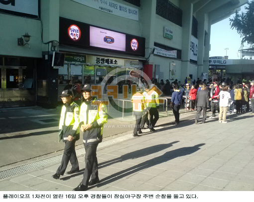 1차전이 열린 16일에는 암표 행위가 거의 보이지 않았습니다. 경기 시작 몇 시간 전부터 경찰들이 쫙 깔려 주변을 순찰했기 때문입니다.