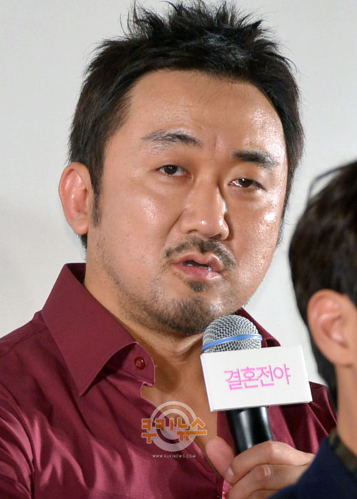 [쿠키 연예] 배우 마동석이 22일 오전 서울 삼성동 메가박스 코엑스에서 열린 영화 ‘결혼전야’(감독 홍지영) 제작보고회에서 취재진의 질문에 답하고 있다.