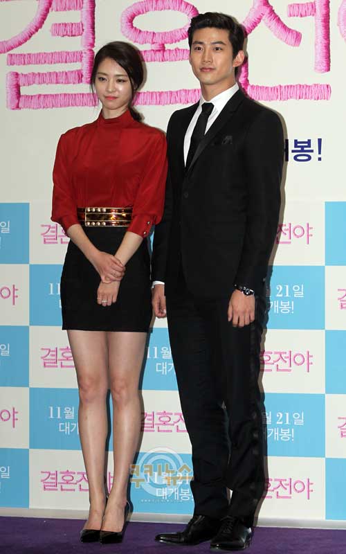 [쿠키 연예] 배우 이연희와 옥택연이 7일 오후 서울 삼성동 메가박스 코엑스에서 열린 영화 ‘결혼전야’ 언론시사회에 참석해 포즈를 취하고 있다.