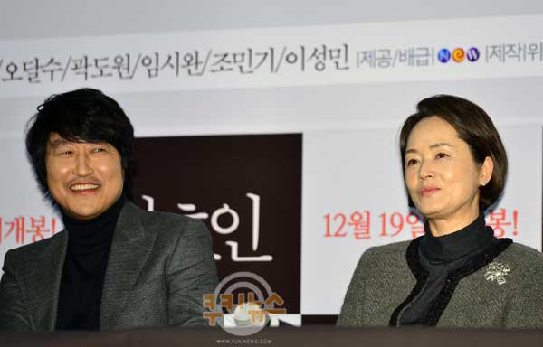 [쿠키 연예] 배우 송강호와 김영애가 29일 오후 서울 CGV 왕십리에서 열린 영화 ‘변호인’ 언론시사회에 참석했다.