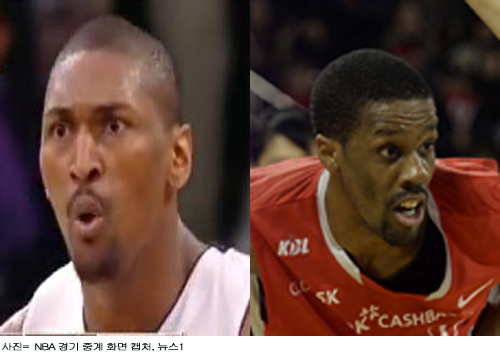 지난해 4월 LA 레이커스의 메타 월드피스(현 뉴욕 닉스·왼쪽 사진)는 2쿼터에 덩크슛을 성공시킨 후 세리머니를 하며 백코트하는 과정에서 상대 팀인 오클라호마 시티의 제임스 하든(현 휴스턴 로케츠)과 부딪히자 뿌리치듯 한 동작으로 그의 얼굴을 팔꿈치로 쳤습니다.