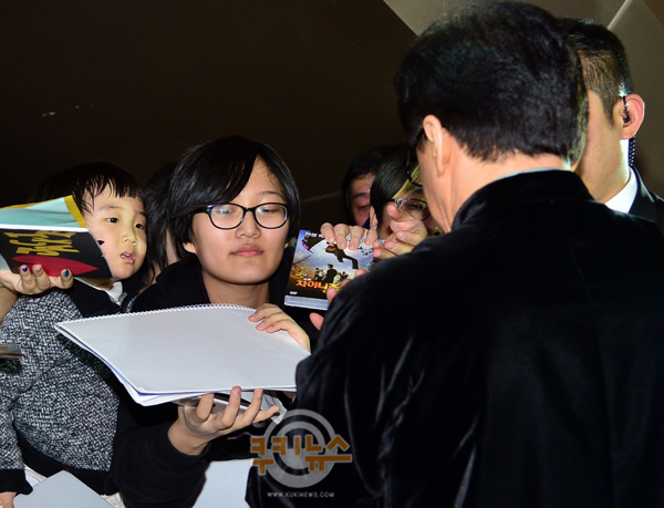[쿠키 연예] 배우 성룡(청룽)이 17일 오후 서울 여의도 IFC몰에서 열린 영화 ‘폴리스 스토리 2014’ 레드카펫 행사에 참석해 팬들과 즐거운 시간을 보내고 있다.