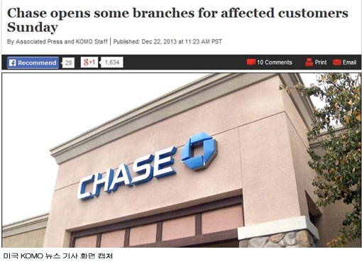 미국 NBC뉴스 등 현지 주요 언론이 지난해 12월 23일 보도한 바에 따르면 체이스맨해튼은행은 대형 유통체인 ‘타깃(target)’에서 일어난 대형 정보유출 사고가 일어난 후 일요일에도 문을 열고 있다.