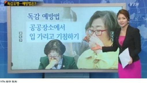 [쿠키 사회] 해양수산부 윤진숙 장관이 뉴스에서 ‘독감예방법’ 소개의 ‘모델’이 됐다.
