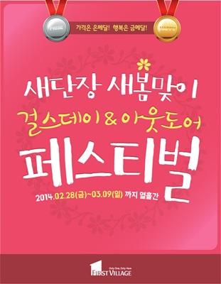 [쿠키 생활] 최상의 브랜드 상품들을 기획 이벤트 등을 통해 합리적 가격에 내놓으면서 이슈를 만들기도 했던 테마형 프리미엄 아울렛 퍼스트빌리지(대표 이남욱, http://1stvillage.com)가 2014년 봄 개편을 맞아 신규 브랜드 33개가 추가 입점하는 한편, ‘걸스데이 & 아웃도어 파격 할인’ 축제인 봄맞이 대형 할인 프로모션을 실시한다고 전했다.