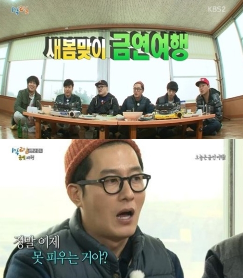 [쿠키 연예] 갑작스럽게 금연 여행을 통보받고 당황한 ‘1박2일’ 멤버들이 시청자들의 웃음을 이끌어내며 동시간대 1위를 차지했다.
