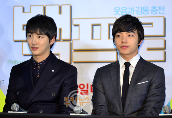 [쿠키 연예] 배우 윤시윤과 여진구가 27일 오후 서울 롯데시네마 건대입구에서 열린 영화 ‘백프로’(감독 김명균) 언론시사회에 참석했다.