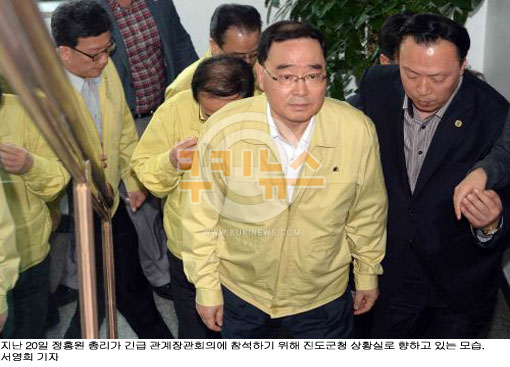 정 총리는 이날 오전 10시 서울 세종로 정부중앙청사에서 가진 긴급 기자회견에서 “사고에 대한 예방과 초동대응에 많은 문제를 드러낸 것에 대해 정부를 대표해 국민께 사과드린다”며 “진작 책임을 지고 물러나려고 했으나 일단 대책 마련에 힘을 쓰는 것이 책임있는 자세라고 생각했다. 하지만 이젠 더 이상 자리를 지키면서 국정운영에 부담을 줘선 안 된다고 결심했다”고 밝혔다.