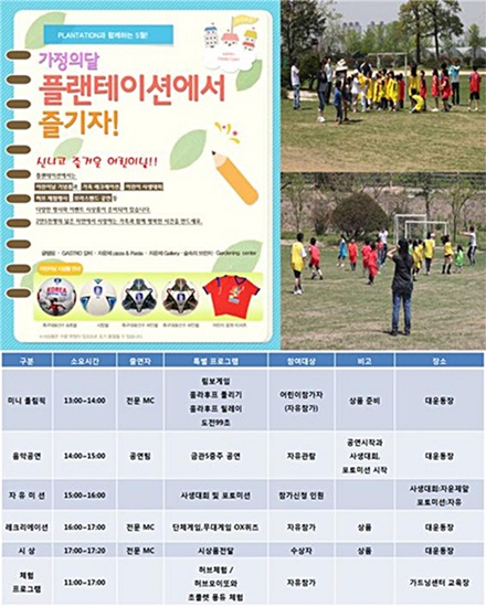 플랜테이션은 어린이날을 맞아 가족과 함께 즐길 수 있는 특별 이벤트 행사를 진행한다고 전했다. 입장하는 모든 어린이에게 기념품을 증정하고, 전문 MC가 진행하는 레크레이션으로 가족이 함께 즐길 수 있는 미니올림픽을 대운동장에서 진행한다.