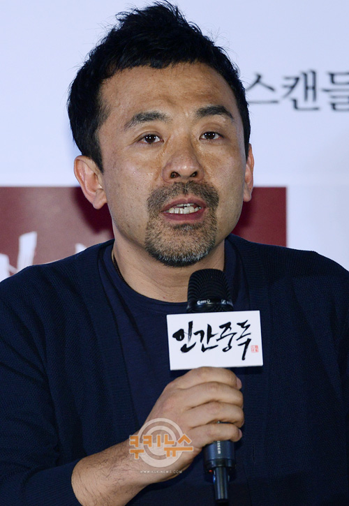 [쿠키 연예] 김대우 감독이 7일 오후 서울 CGV 왕십리에서 열린 영화 ‘인간중독’ 언론시사회에 참석해 취재진의 질문에 답하고 있다.