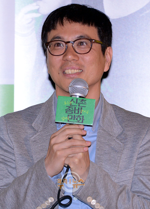 [쿠키 연예] 김태용 감독이 9일 오전 서울 CGV 왕십리에서 열린 영화 ‘신촌좀비만화’ 언론시사회에 참석해 취재진의 질문에 답하고 있다.