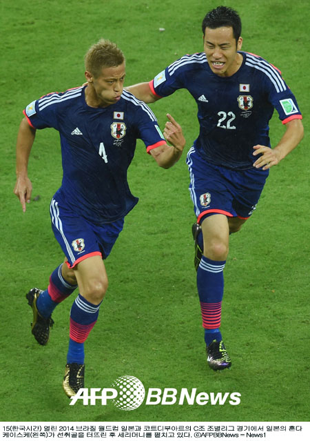 혼다는 15일(한국시간) 브라질 헤시피의 페르남부쿠 경기장에서 열린 코트디부아르(23위)와의 2014 브라질 월드컵 조별리그 C조 1차전에서 전반 16분 선제골을 터뜨렸다.