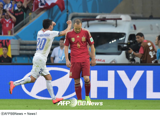 결국 스페인은 전반 43분에 차를레스 아란기스에게 쐐기골까지 내주고 말았다.