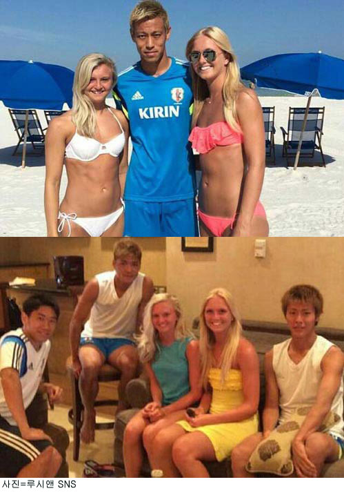 루시앤은 이달 초 자신의 SNS에 “언니와 함께 미국 플로리다 해변에 놀러 갔다가 일본 대표팀 선수들로부터 ‘헌팅’을 당했다”며 “백사장과 노래방 등을 돌아다니며 즐거운 시간을 보냈다”는 글을 올렸다. 이와 함께 루시앤은 혼다 케이스케(29·AC 밀란), 카가와 신지(26·맨체스터 유나이티드) 등 일본 대표팀의 간판 스타들과 함께 찍은 사진까지 게재했다.