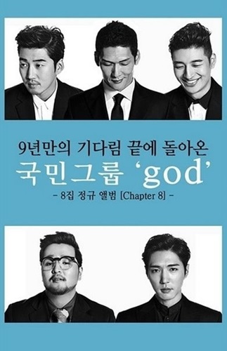god는 8일 0시 각종 온라인 음원사이트를 통해 정규 8집 ‘Chapter 8’을 공개했다. 히트곡 제조기 프로듀서팀 이단옆차기와 god 김태우가 공동 프로듀싱한 이번 앨범에는 ‘미운오리새끼’ ‘하늘색 약속’ ‘우리가 사는 이야기’등 총 12곡이 담겼다.