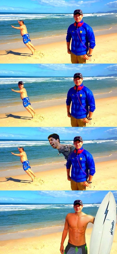 배성재의 사진 수정 요청에 네티즌들은 다양한 합성사진들을 연이어 올려 웃음을 자아냈다. 합성사진에는 ‘핵이빨’ 수아레스가 수영복 입은 남성을 깨물려 하고 있다. 또 배성재의 몸에 상의탈의한 근육질 남성의 몸을 합성하거나 배성재를 아예 지워버리는 등 기발한 아이디어가 넘치는 합성사진들이 올라오고 있다.