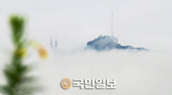장마가 소강상태를 보이며 오락가락 비가 내린 24일 관악산 정상이 짙은 운무에 휘감겨 있다.