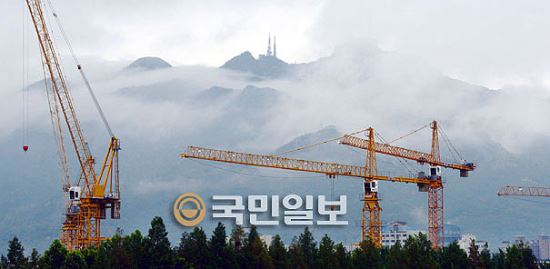 장마가 소강상태를 보이며 오락가락 비가 내린 24일 관악산 정상이 짙은 운무에 휘감겨 있다.