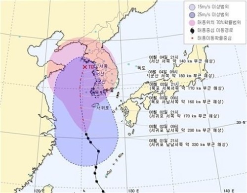 기상청은 태풍의 영향으로 제주에 3일 밤까지 강풍이 불고 비가 100∼200㎜, 많은 곳은 300㎜ 이상 내릴 것으로 내다봤다.