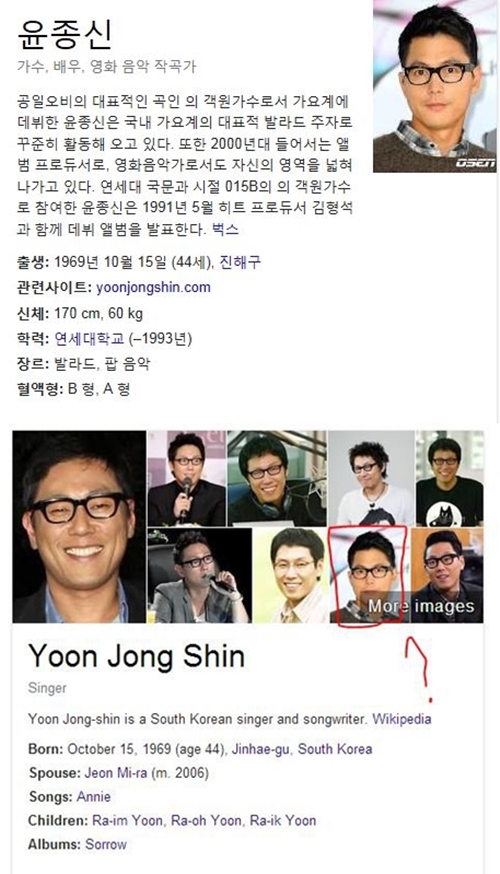 실제 구글에서 윤종신을 검색하면 프로필 사진에 다른 사람의 사진이 뜬다. 바로 정우성이다. 일부 네티즌들은 구글 캐나다에서도 윤종신을 검색하면 정우성 사진이 올라온다고 제보했다.