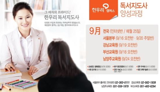 한편, 한우리 독서지도사 양성과정은 국내 최초 독서·토론·논술 분야 전문교육으로, 총 4개월간 ‘독서교육론’, ‘독서논술지도론’, ‘독서자료론’, ‘독서지도방법론’ 등 어린이·청소년 대상의 듣기, 말하기, 읽기, 쓰기, 생각하기 독서지도와 독서교육법에 관련된 커리큘럼으로 진행된다.