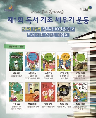 교육출판전문기업 ㈜미래엔(구 대한교과서, 대표 김영진)의 아동 출판 브랜드 ‘아이세움’이 독서문화 증진을 위해 9월 5일부터 2015년 1월 30일까지 ‘제1회 독서 기초 세우기 운동’을 개최한다.