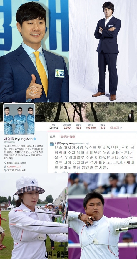 서형욱 MBC 해설위원의 일침입니다. 그는 지난달 22일 자신의 트위터에 “요즘 아시안게임 뉴스를 보고 있으면 소치 올림픽 때 소치 욕하고 비웃던 우리가 떠오른다. 실은, 우리야말로 수준 이하였던 거다. 실익도 없는 대회 유치하곤 적자 떠안고, 그나마 제대로 준비도 못해 망신살 뻗치는…”이란 글을 게재했습니다.