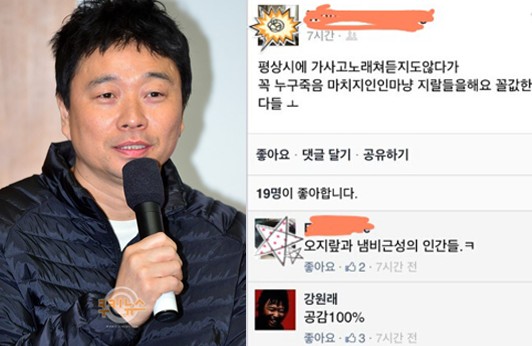 가수 강원래가 고(故) 신해철 사망에 대한 애도 분위기를 비하하는 내용의 글에 동조해 물의를 빚고 있다.