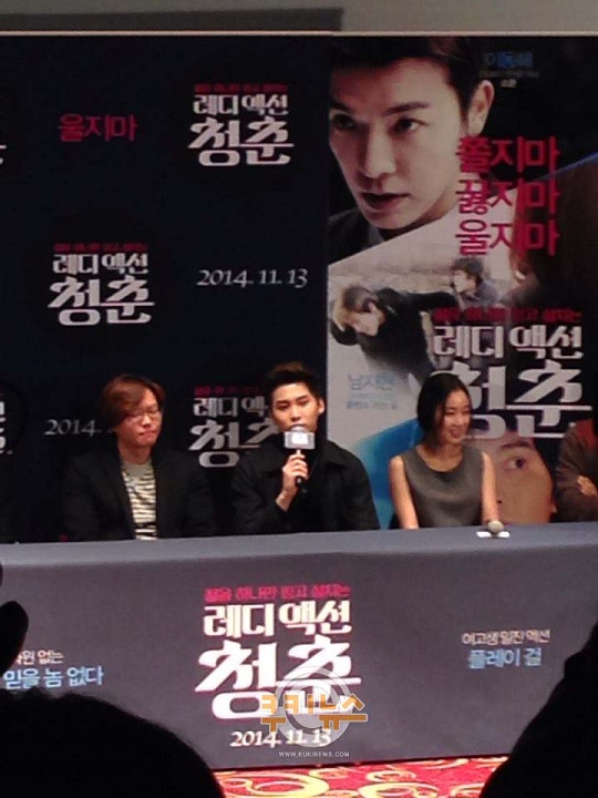 영화 ‘레디액션 청춘’을 통해 스크린에 데뷔한 송승현은 5일 서울 광진구 롯데시네마 건대입구에서 열린 기자간담회에 떨리는 표정으로 등장했다. 영화는 신인감독 4명이 청춘, 액션을 주제로 만든 단편영화 4편 ‘소문’ ‘훈련소 가는 길’ ‘세상에 믿을 놈 없다’ ‘플레이 걸’로 구성된 옴니버스식 영화다.
