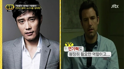 개그맨 이윤석이 헐리우드 영화 ‘나를 찾아줘’의 한국판 주인공으로 배우 이병헌을 꼽았다.