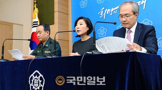 정부 관계자들이 26일 서울 도렴동 외교부에서 에볼라 위기대응 보건인력 파견 선발대의 활동결과를 발표하며 긴급구호대 1진의 향후일정을 밝히고 있다. 왼쪽부터 박철균 국방부 국제정책차장, 오영주 외교부 개발협력국장, 권준욱 보건복지부 공공보건정책관.