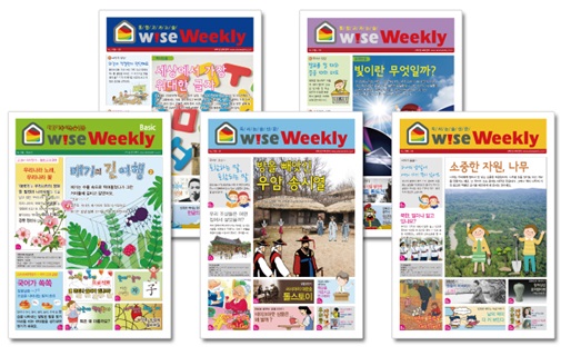 주간으로 발행되는 와이즈 위클리 학원용은 새로운 통합교과 과정과 연계된 주제로 논리적 주장과 글쓰기를 통해 논술능력을 높여주는 것이 강점이다.