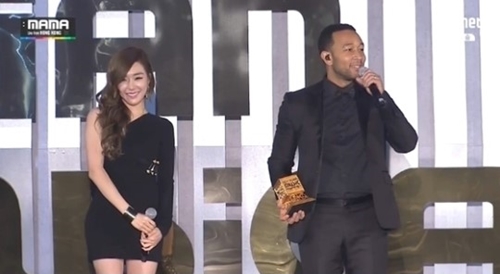 세계적인 알앤비 가수 존 레전드가 소녀시대 티파니와 엑소 첸이 합동무대를 꾸몄다.