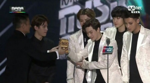 중국 언론 시나닷컴은 지난 3일 홍콩 아시아 월드 엑스포 아레나에서 열린 ‘2014 MAMA’(Mnet Asia Music Awards)에서 엑소가 대상을 수상하면서 시상자로 나선 유덕화를 쳐다보지도 고 한 손으로 상을 받는 등 무례하게 행동했다고 4일 보도했다.