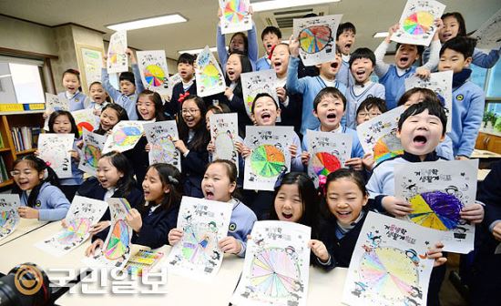 19일 서울에서 가장 먼저 방학에 들어간 동대문구 장안동 은석초등학교에서 겨울방학을 맞은 어린이들이 방학 생활계획표를 들어 보이며 즐거워하고 있다.