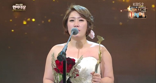 마지막으로 그는 “행복하게 사는 법 알려준 동료들 감사하다. 개그를 미련하게 사랑하는 개그우먼이다. 개그콘서트 무대 섰을 때가 가장 행복하다. 진정성 있는 웃음 드리도록 노력하겠다”고 말하며 눈물을 보였다.